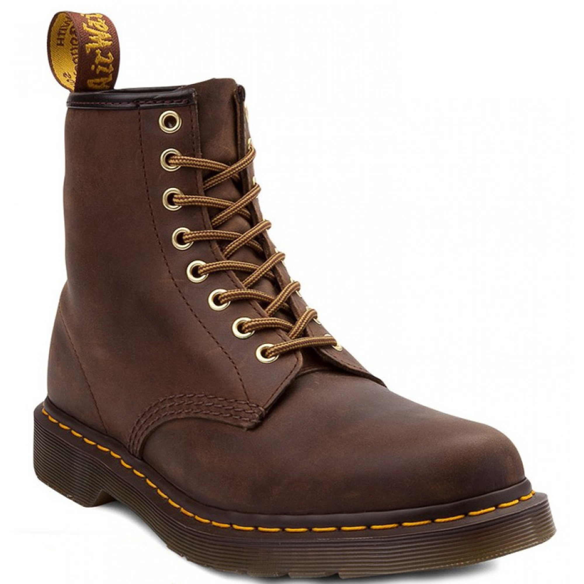 Dr. Martens 1460 Gaucho Crazy Horse Leather — классические ботинки в коричневом оттенке из натуральной кожи Crazy Horse. Мягкий матовый верх со временем приобретает уникальный винтажный эффект, а жёлтая строчка и фирменная воздушная подошва AirWair завершают культовый образ.