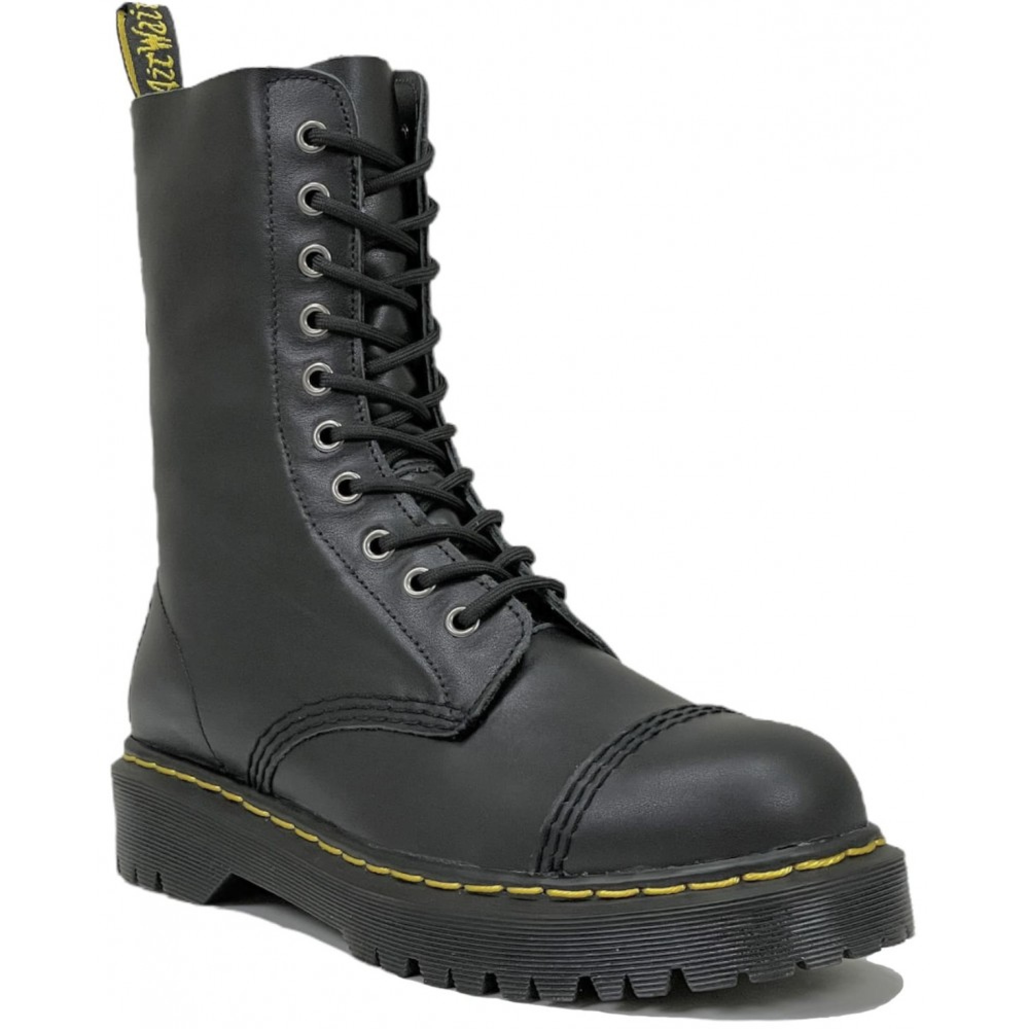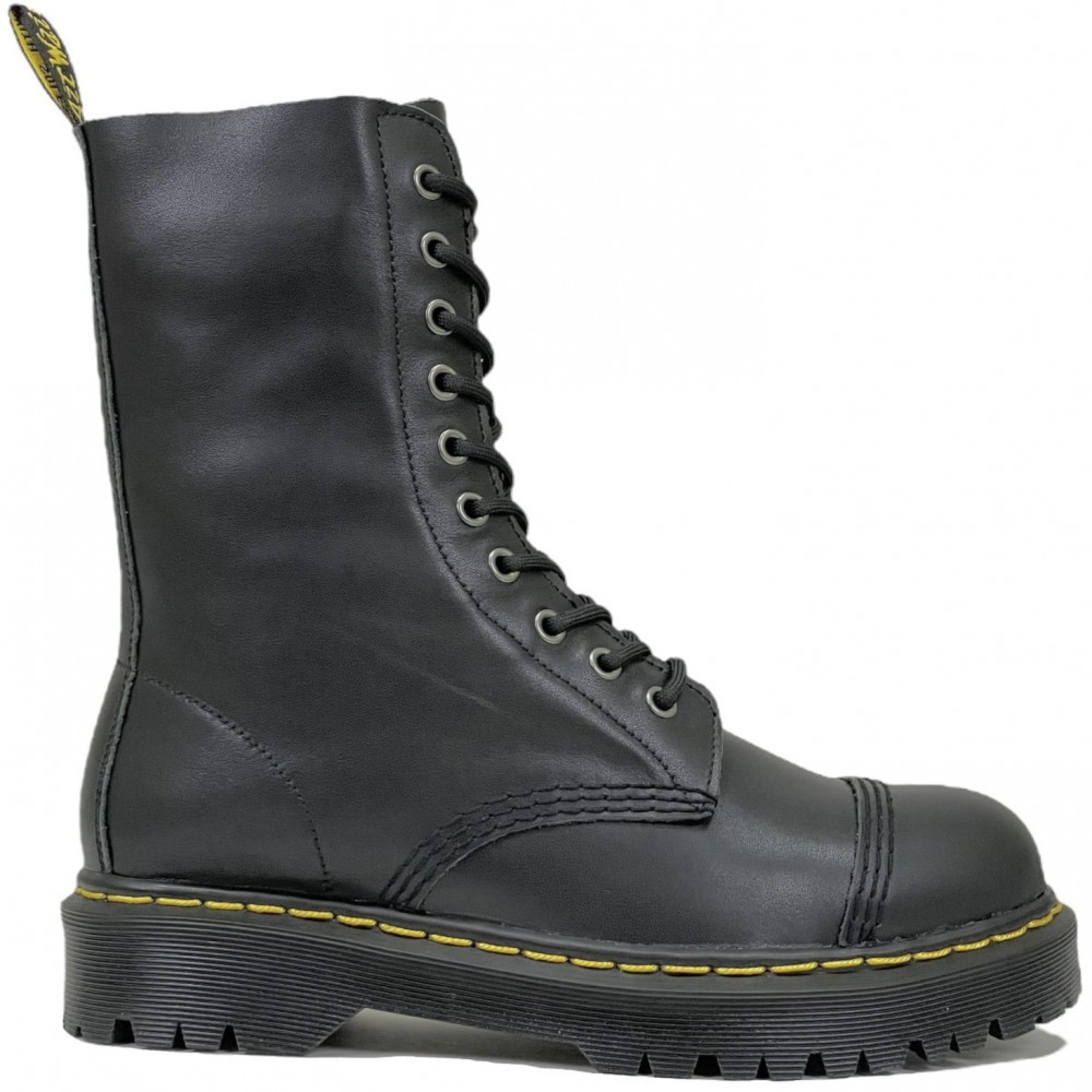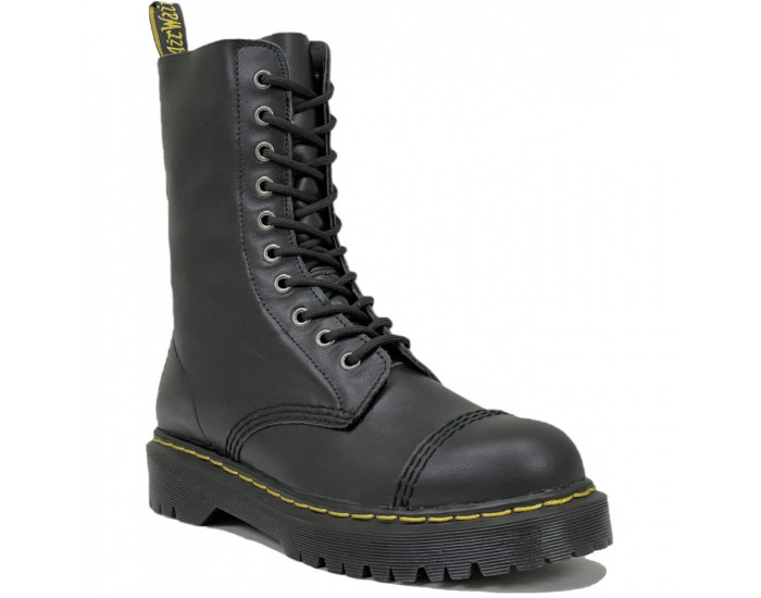 Dr. Martens 1490 BXB Black Fine Haircell — высокие ботинки с 10 люверсами, выполненные из зернистой кожи Fine Haircell. Модель выделяется минималистичным чёрным дизайном, фирменной петлей на пятке и прочной подошвой с воздушной подушкой.